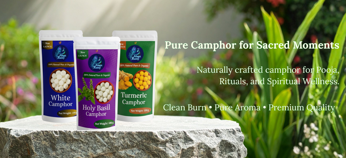 We follow strict quality checks for every batch — from sourcing raw materials to final packaging. Every camphor and food product is carefully prepared, filtered, cleaned, and packed under controlled standards to ensure purity and safety.